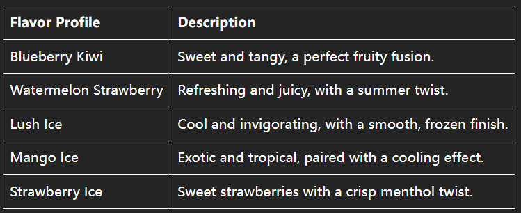 Avec sa capacité de bouffée inégalée et ses saveurs variées, il promet longévité et satisfaction aux utilisateurs, tandis que ses caractéristiques écologiques séduisent les consommateurs soucieux de l'environnement.