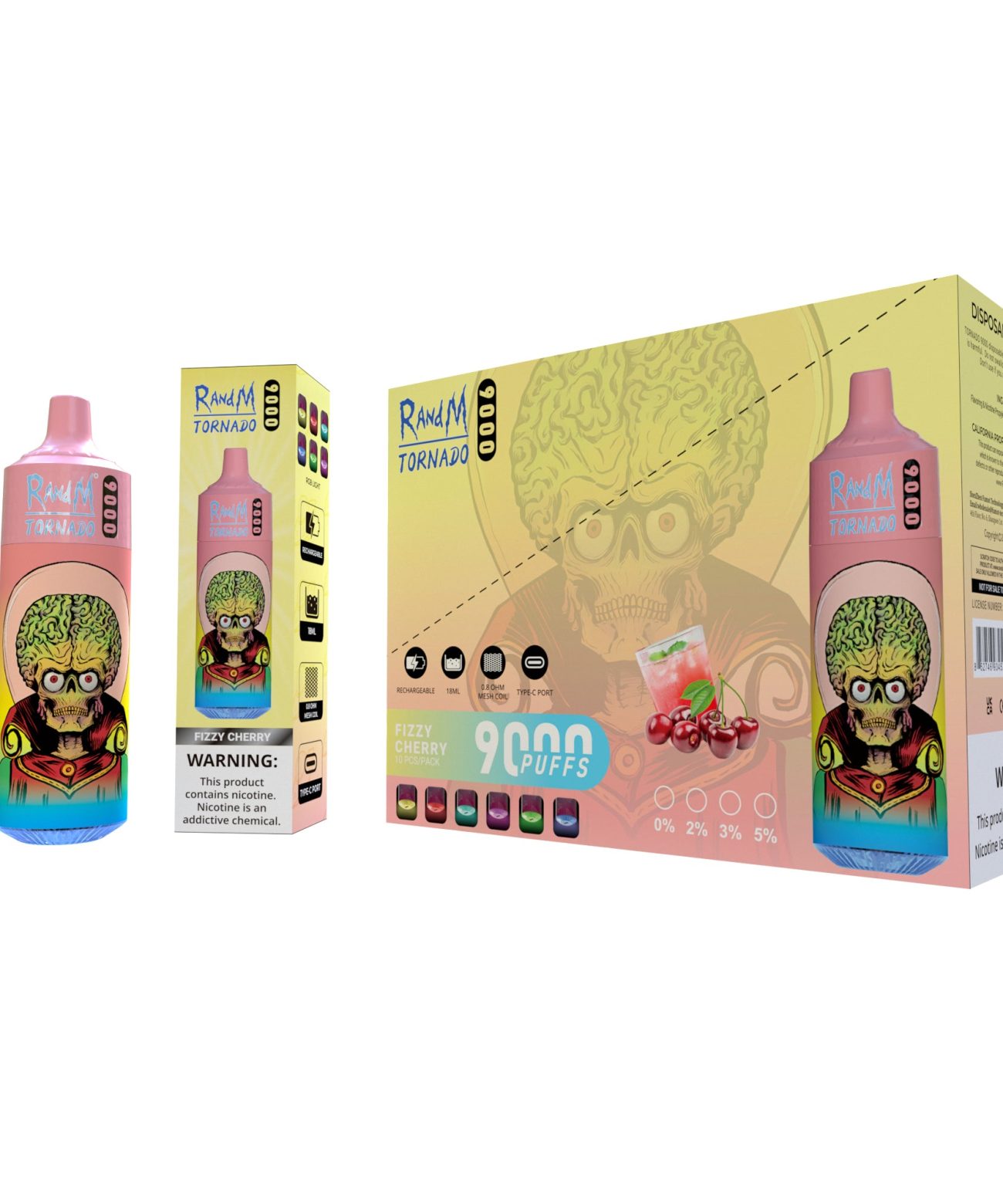 Tornado 9000 is RandM’s most popular product! 9000 puff vape,fizzy cherry Flavour